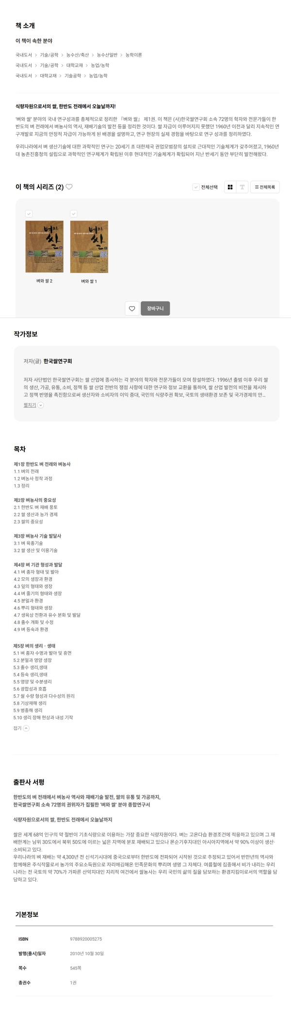 벼와 쌀 분야의 전문지식을 집대성한 '벼와 쌀 1"