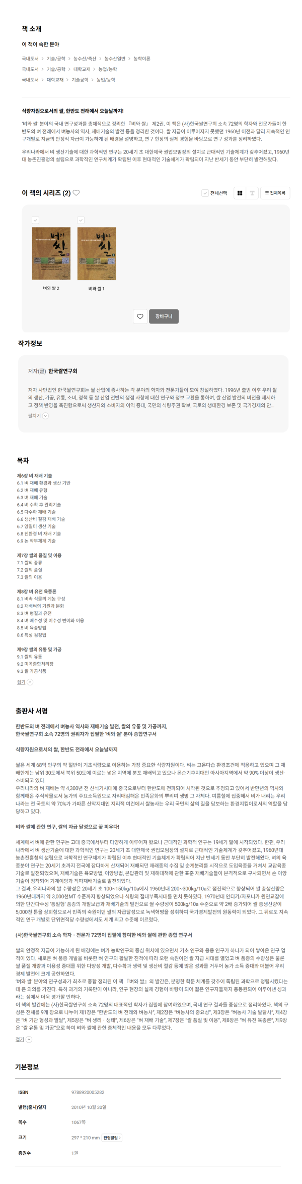 벼와 쌀 분야의 전문지식을 집대성한 "벼와 쌀 2"