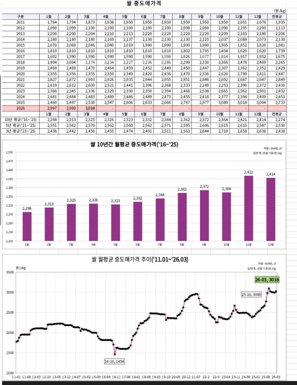 2026년 03월 쌀 중도매 가격